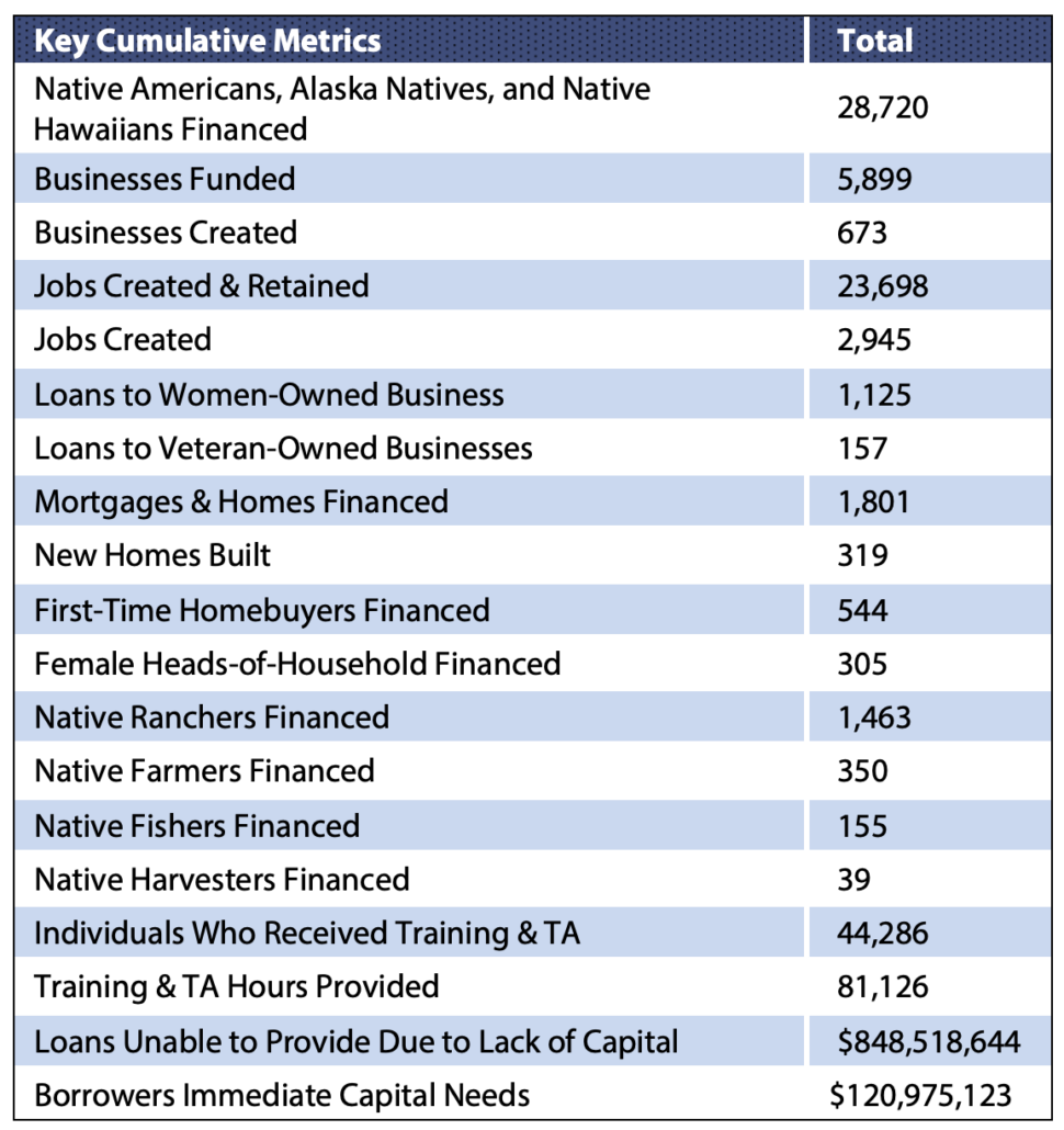 Our mission is to create pathways for Native people to build financial assets, generate wealth, and strengthen sovereignty through the development of strong, sustainable institutions and programs.