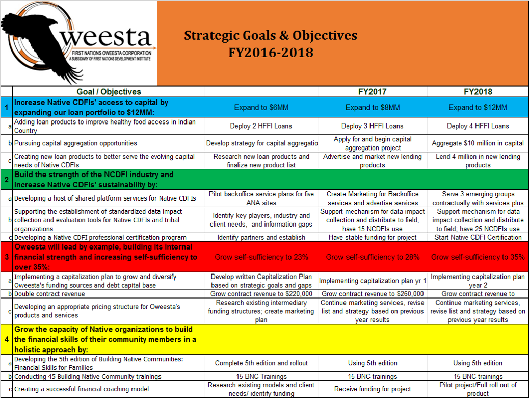Oweesta is the longest standing Native CDFI intermediary offering financial products and development services exclusively to Native CDFIs and Native communities. Specifically, Oweesta provides training, technical assistance, investments, research, and policy advocacy to help Native communities develop an integrated range of asset-building products and services, including financial education and financial products.
